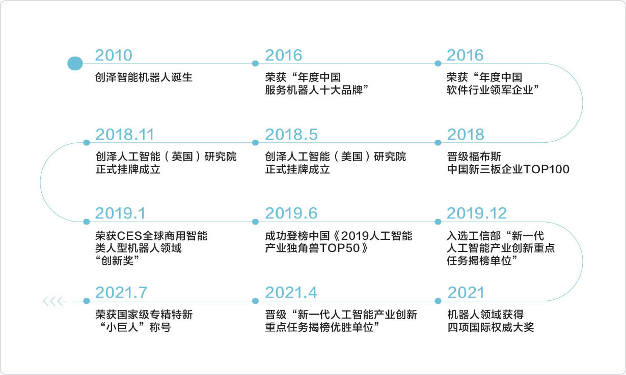 創(chuàng)澤智能機(jī)器人集團(tuán)股份有限公司成立于2010年,是集研發(fā)、生產(chǎn)、銷售于一體的國(guó)家高新技術(shù)企業(yè)、是工業(yè)和信息化部“新一代人工智能產(chǎn)業(yè)創(chuàng)新重點(diǎn)任務(wù)”揭榜單位與優(yōu)勝單位、榮獲吳文俊人工智能科技進(jìn)步獎(jiǎng)、國(guó)家專精特新“小巨人”稱號(hào),擔(dān)負(fù)著為國(guó)家開展智能公共服務(wù)機(jī)器人項(xiàng)目技術(shù)攻關(guān)的使命。全球榮獲CES創(chuàng)新獎(jiǎng)的商用類人型智能服務(wù)機(jī)器人企業(yè)、中國(guó)智能服務(wù)機(jī)器人領(lǐng)軍企業(yè)。