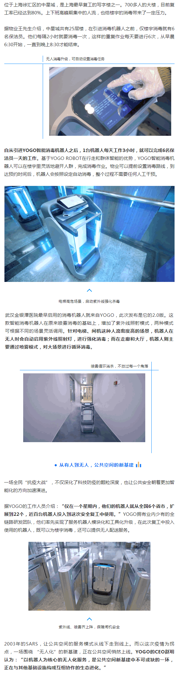 3月13日,L先的機器人企業(yè)YOGO ROBOT宣布,繼噴霧消殺機器人在疫區(qū)服役后,他們的新版智能消毒機器人,也將多面投入到復(fù)工企業(yè)的日常保衛(wèi)戰(zhàn)中。