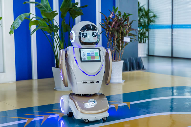 創(chuàng)澤的智能機(jī)器人在前臺(tái)工作,可語音對(duì)話喚醒