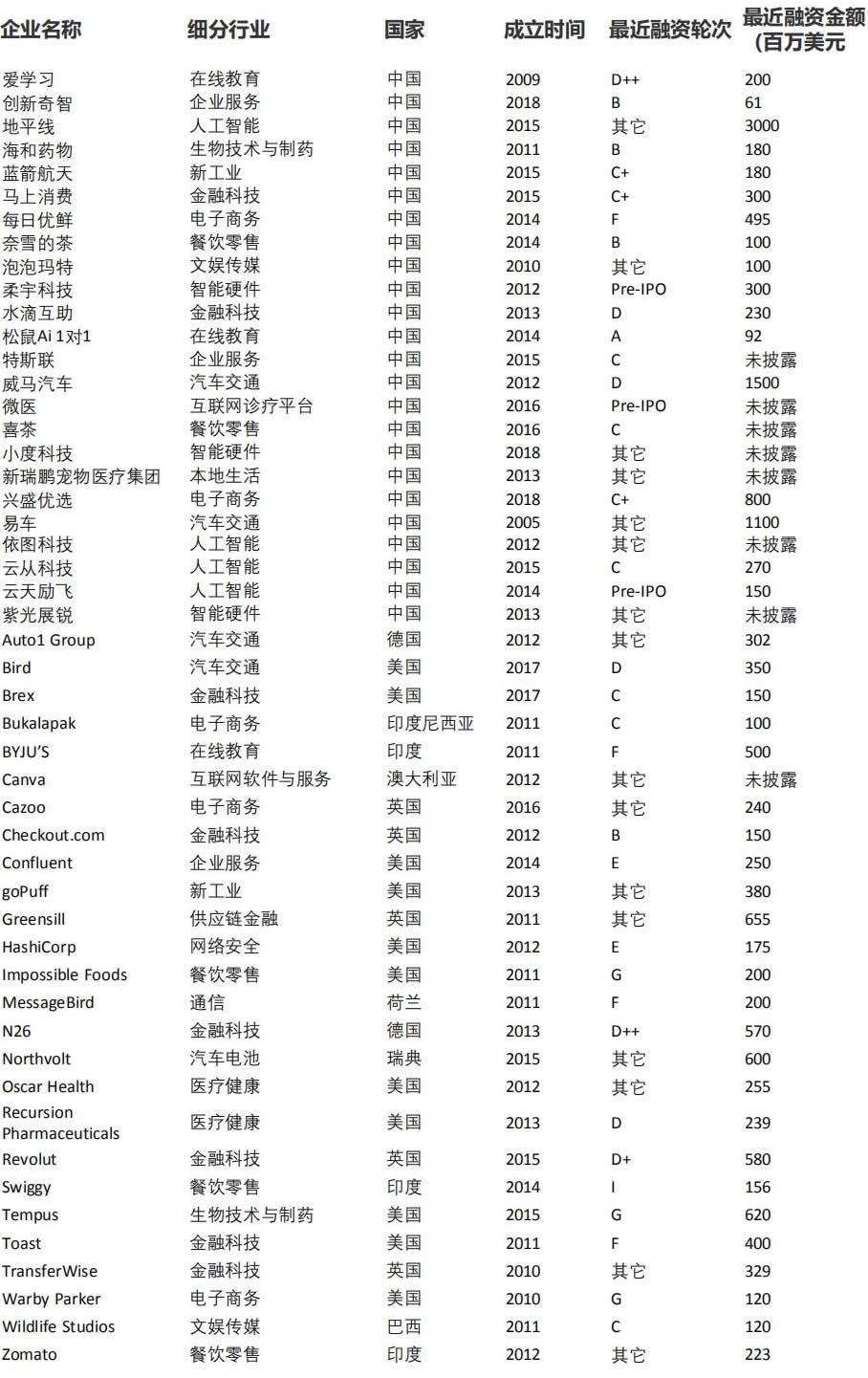 100家公司中,醫(yī)療保健,企業(yè)服務(wù),制造,硬件和電子商務(wù)在行業(yè)方面排名前五,分別囊括18、17、16、12、8家企業(yè),2020孕育了多的醫(yī)藥公司