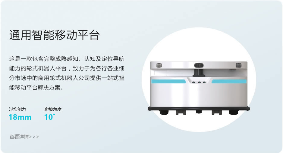 移動(dòng)機(jī)器人底盤續(xù)航10個(gè)小時(shí)以上,一次建圖超過幾萬平方,融合多個(gè)視覺傳感器對(duì)行走環(huán)境進(jìn)行立體建模,滿足多種場(chǎng)景下使用有5大優(yōu)勢(shì)